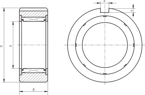 B200系列為無內(nèi)環(huán)無軸承支撐的楔塊式單向離合器。徑向尺寸與標準軸承尺寸相同。使用時需配合軸承安裝,以保證軸和離合器外環(huán)的同心度,承受軸向與徑向負載。使用時需加注潤滑油脂。B200為英制系列。