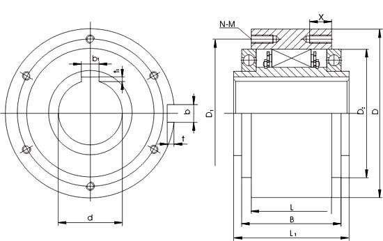 內(nèi)外環(huán)有鍵槽,端面帶螺孔,可安裝于垂直或水平方位位置。