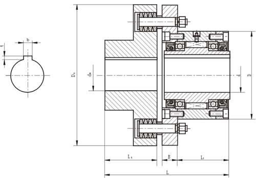 內(nèi)環(huán)與半聯(lián)軸器通過鍵聯(lián)結(jié)到相對軸上。